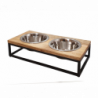 Nerezové misky s moderným elegantným stojanom pre psy na krmivo a vodu Nobby Elegant Diner s vrchnou drevenou doskou.