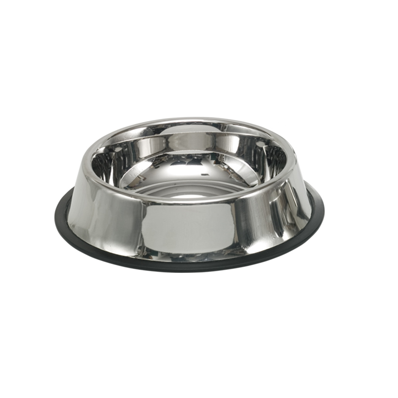 Klasická nerezová miska pre psy a mačky na krmivo a vodu s protišmykovým gumeným kruhom Nobby miska protišmyková XXL v striebornej farbe s objemom 2,9l.