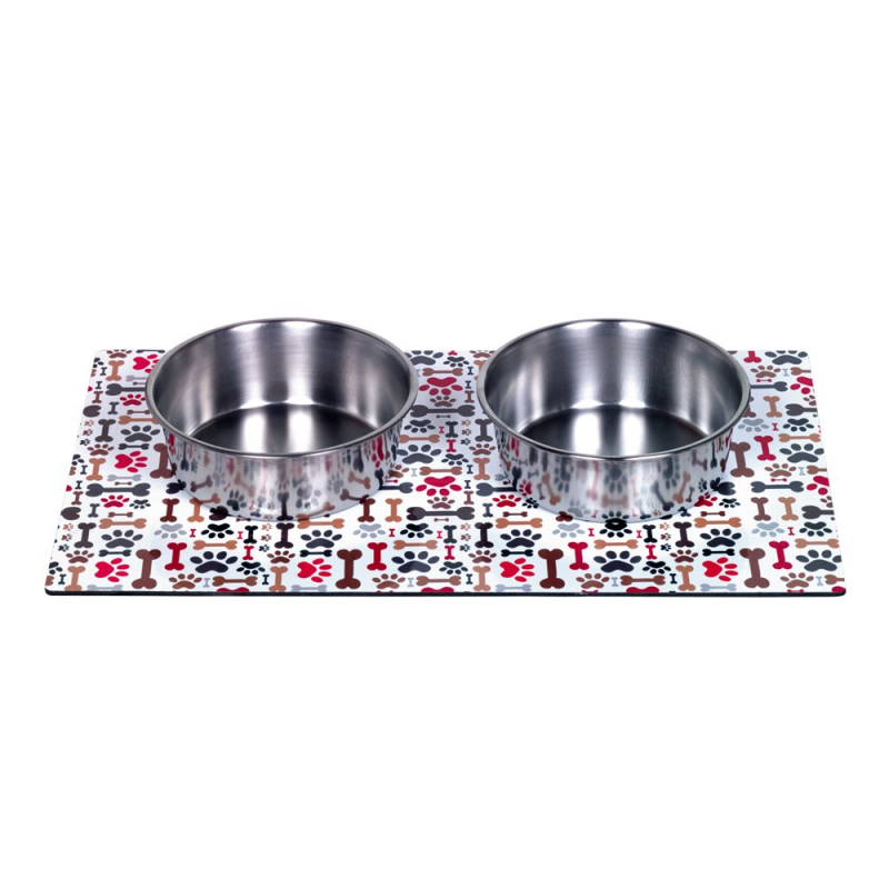 Unikátna magnetická podložka pod misky pre psy s celkovým objemom misiek 920ml s rôznofarebnou polačou kostičiek a labiek.