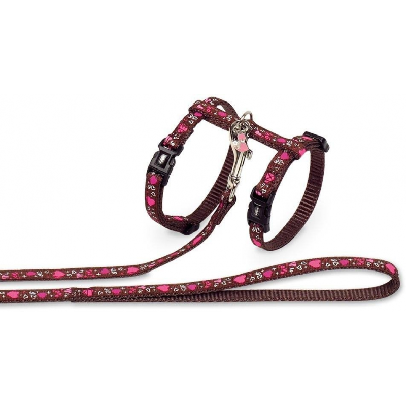Či už pri návšteve veterinára alebo pri cestovaní - aj mačky musia byť v určitých situáciách kvôli vlastnej bezpečnosti na vodítku. Súpravu "Love" zdobí štýlový vzor srdiečok.