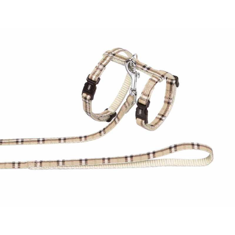 Špeciálny univerzálne nastaviteľný set postroja s vodítkom pre mačky z nylonu s plastovým povrchom od Nobby Tartan v béžovej farbe.