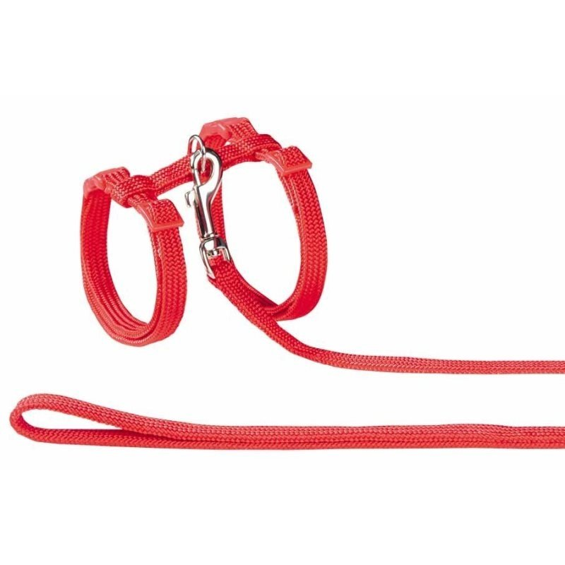 Univerzálne nastaviteľný set postroja s vodítkom pre mačky z nylonu od Nobby v červenej farbe.