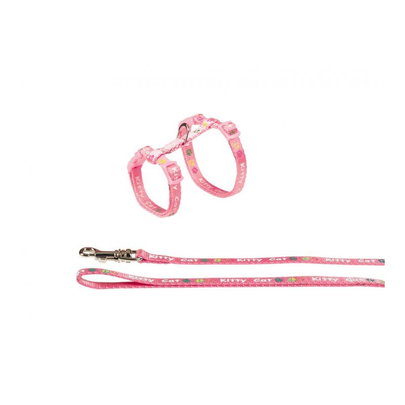 Nylonový postroj s vodítkom pre malé mačky a mačiatka v ružovej farbe.