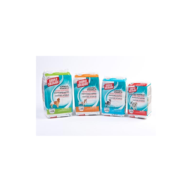 Jednorázové plienky pre psov od Simple Solution sú vyrobené z mikrovlákna, obsahujú super absorpčný polymér, ktorý prispieva k rýchlemu vstrebaniu tekutín a udržuje pokožku v suchu.