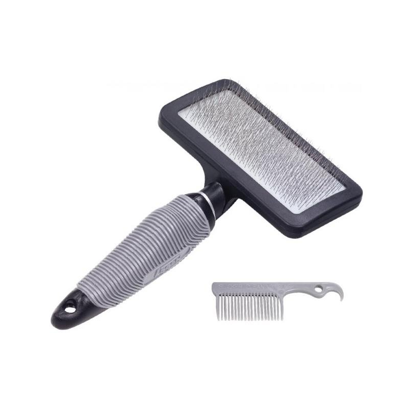 Profesionálna kefa pre psy a mačky na jemné odstránenie odumretých chlpov a nečistôt zo srsti Nobby Starline Care L. Súčasťou balenia je čistiaci hrebeň zadarmo.
