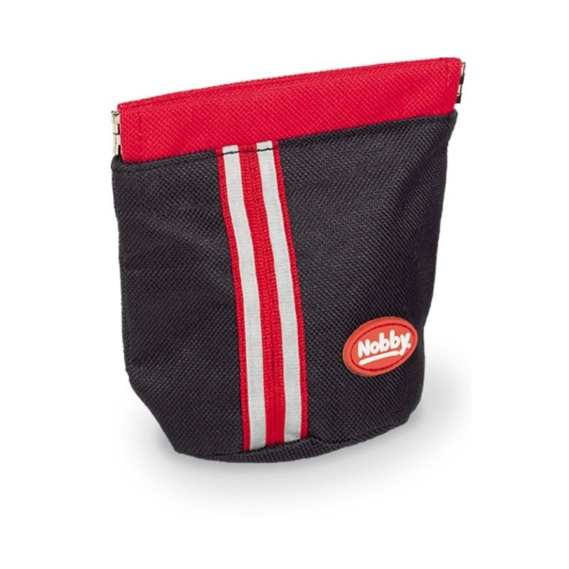 Praktické samozatváracie vrecko na odmeny pre psy s reflexnými prvkami od Nobby o veľkosti 11x11cm vo farbe - čierna/červená.