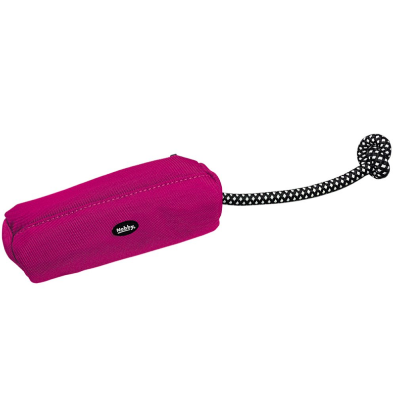 Tréningová hračka s reflexným lanom pre menšie plemená psov Nobby Rio Snack Dummy vhodná na učenie a trénovanie s pozitívnou motiváciou o veľkosti S (15x6cm) vo farbe - malinová.