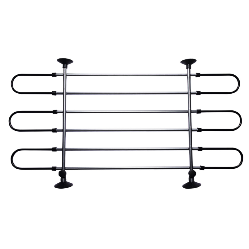 Dve kolmé nosné rúrky sa pomocou závitových tyčí a krídlových matíc prispôsobia veľkosti auta a upevnia sa medzi podlahou a strechou automobilu (bez skrutkovania). Jednotlivé priečky sa následne povytiahnu k bokom automobilu a inštalácia mreže je hotová!